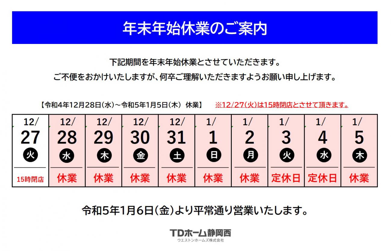 > 年末年始休業のご案内