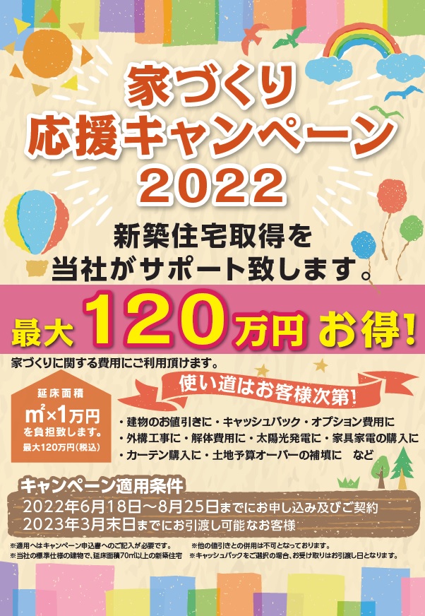 ただいまお得なキャンペーン『家づくり応援キャンペーン2022』開催中!